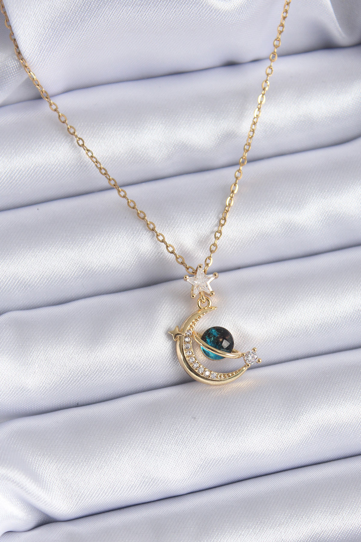 316L Çelik Gold Renk Zirkon Taşlı Hilal Model Kadın Kolye - TJ-BKO7690