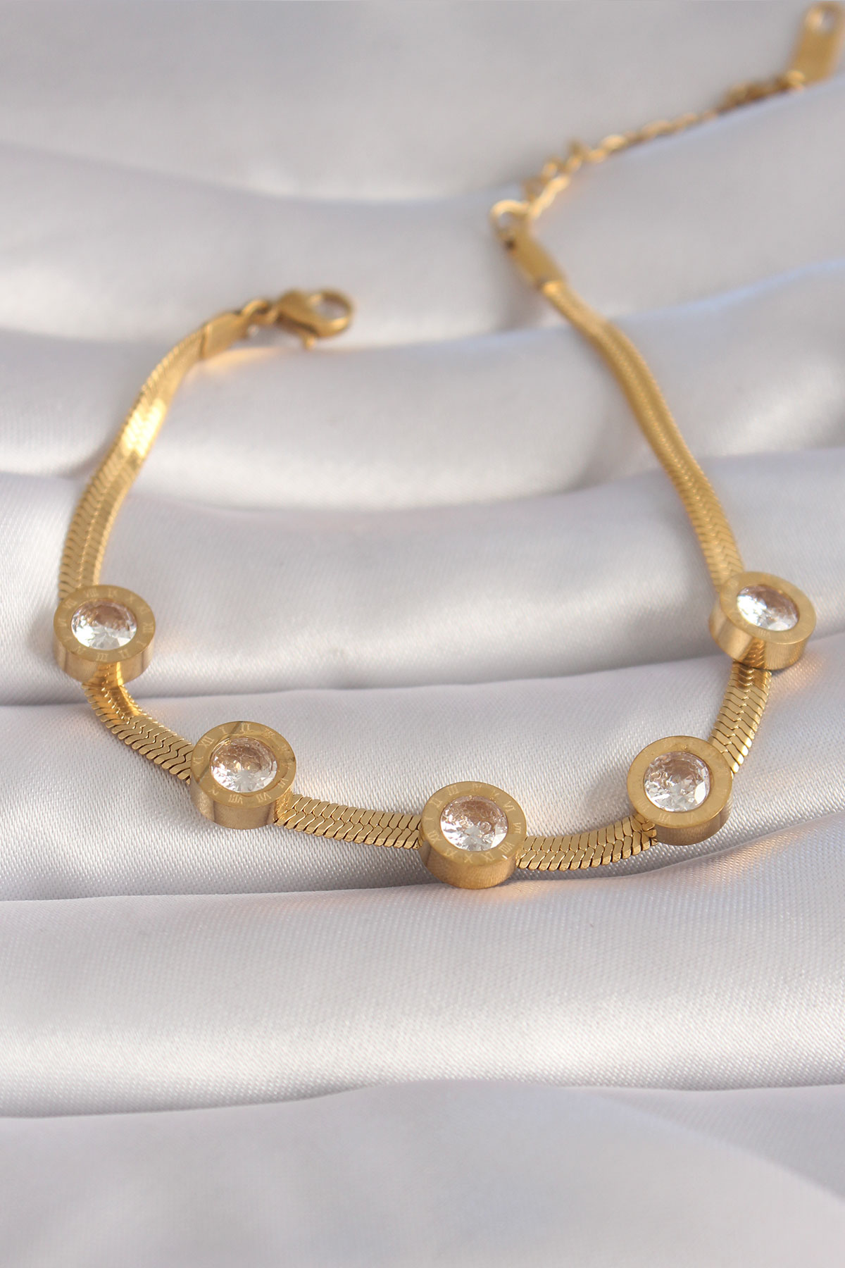 316L Çelik Gold Renk Zirkon Taşlı İtalyan Zincir Model Kadın Bileklik - TJ-BB6007