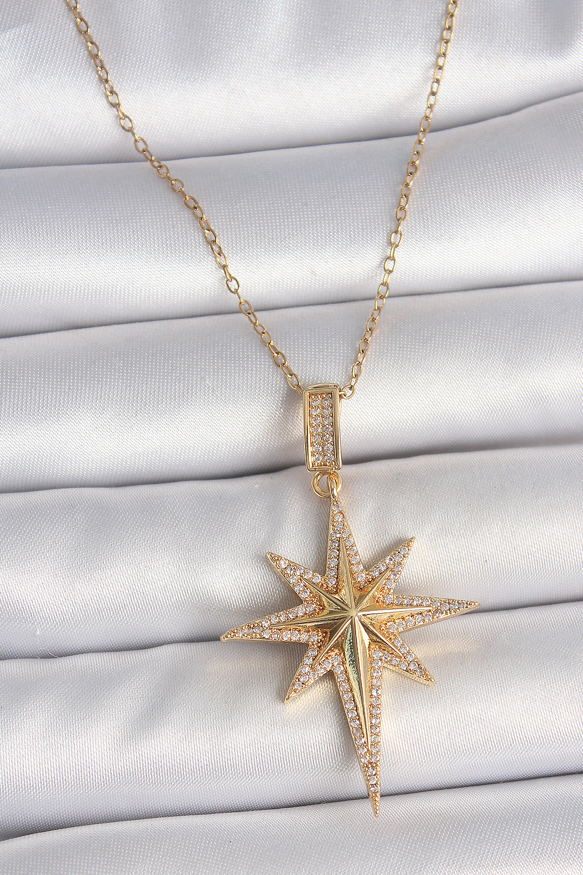 316L Çelik Gold Renk Zirkon Taşlı Kutup Yıldız Model Kadın Kolye - TJ-BKO10092