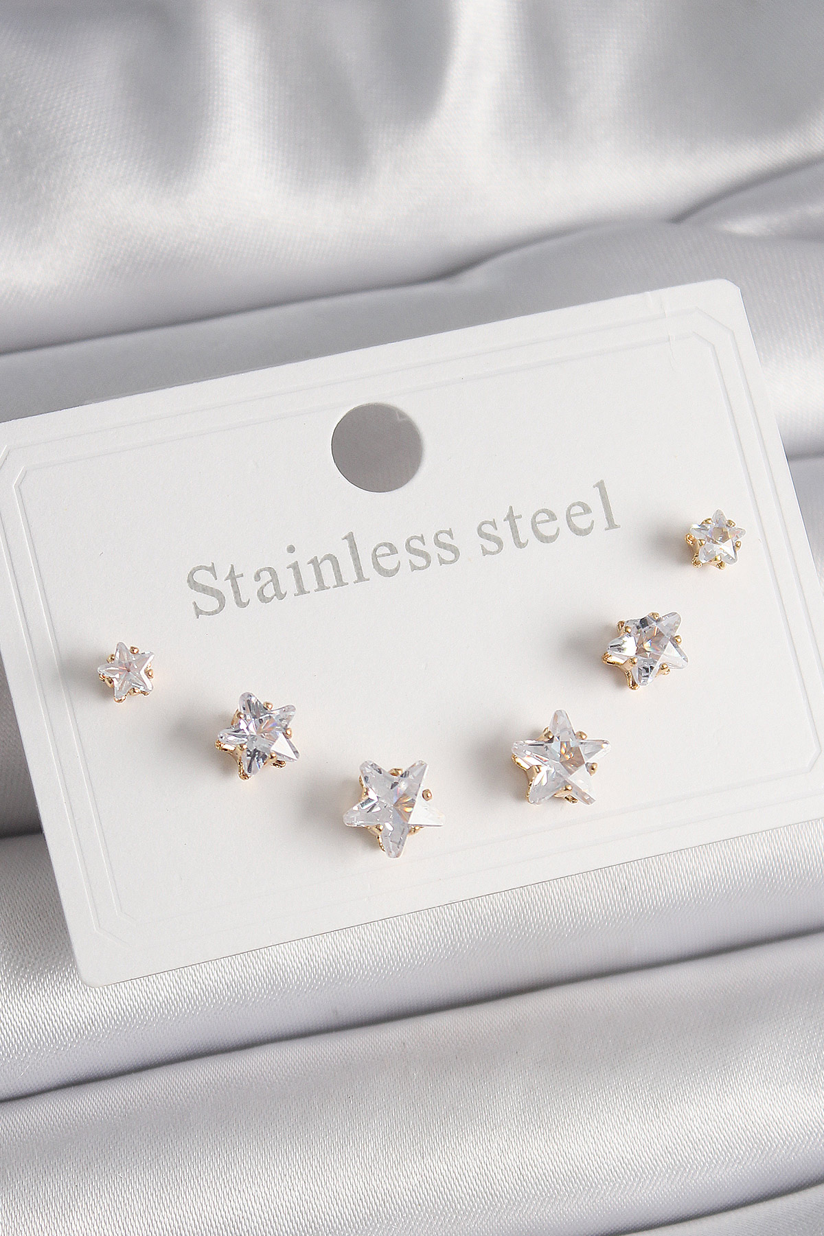 316L Çelik Gold Renk Zirkon Taşlı Yıldız Model Kadın Küpe Seti - TJ-BKP9882