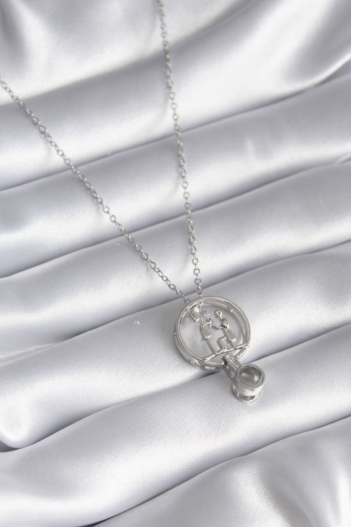 316L Çelik Gümüş İnsan Figür Model '100 Dilde Seni Seviyorum' Projeksiyon Kadın Kolye - TJ-BKO8291