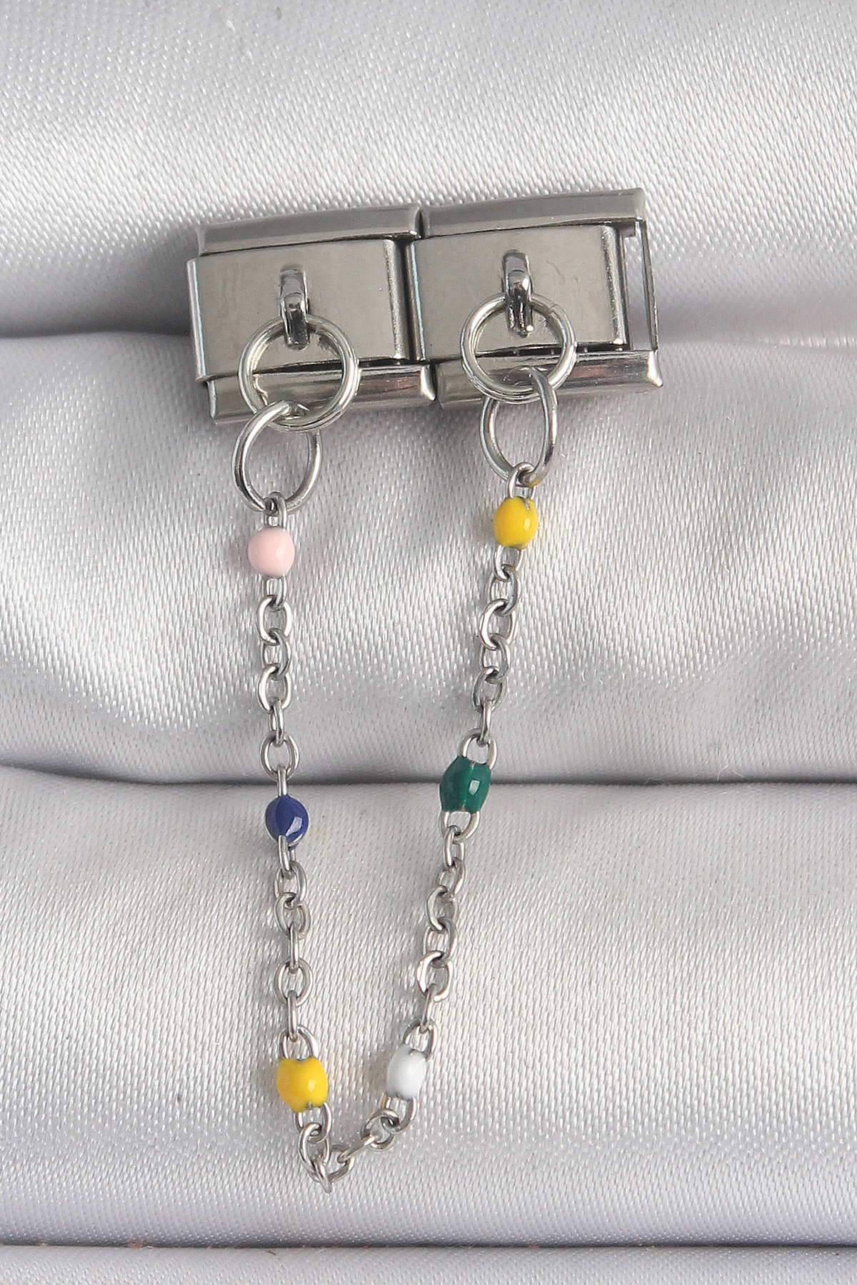 316L Çelik Gümüş Renk 2'Li Sallantı Zincir Model Nomination Charm - TJ-BC1384