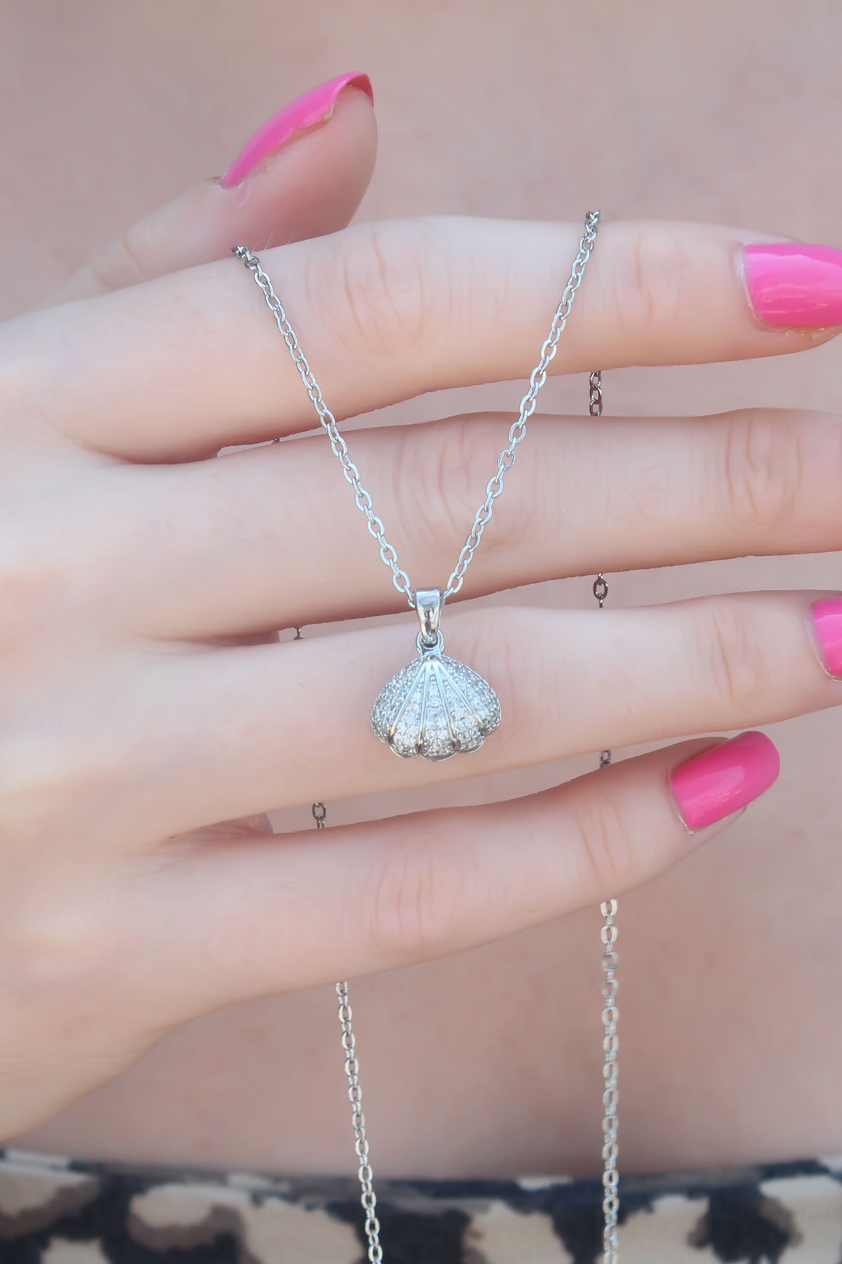 316L Çelik Gümüş Renk Açılır Midye Model Kadın Kolye - TJ-BKO7389