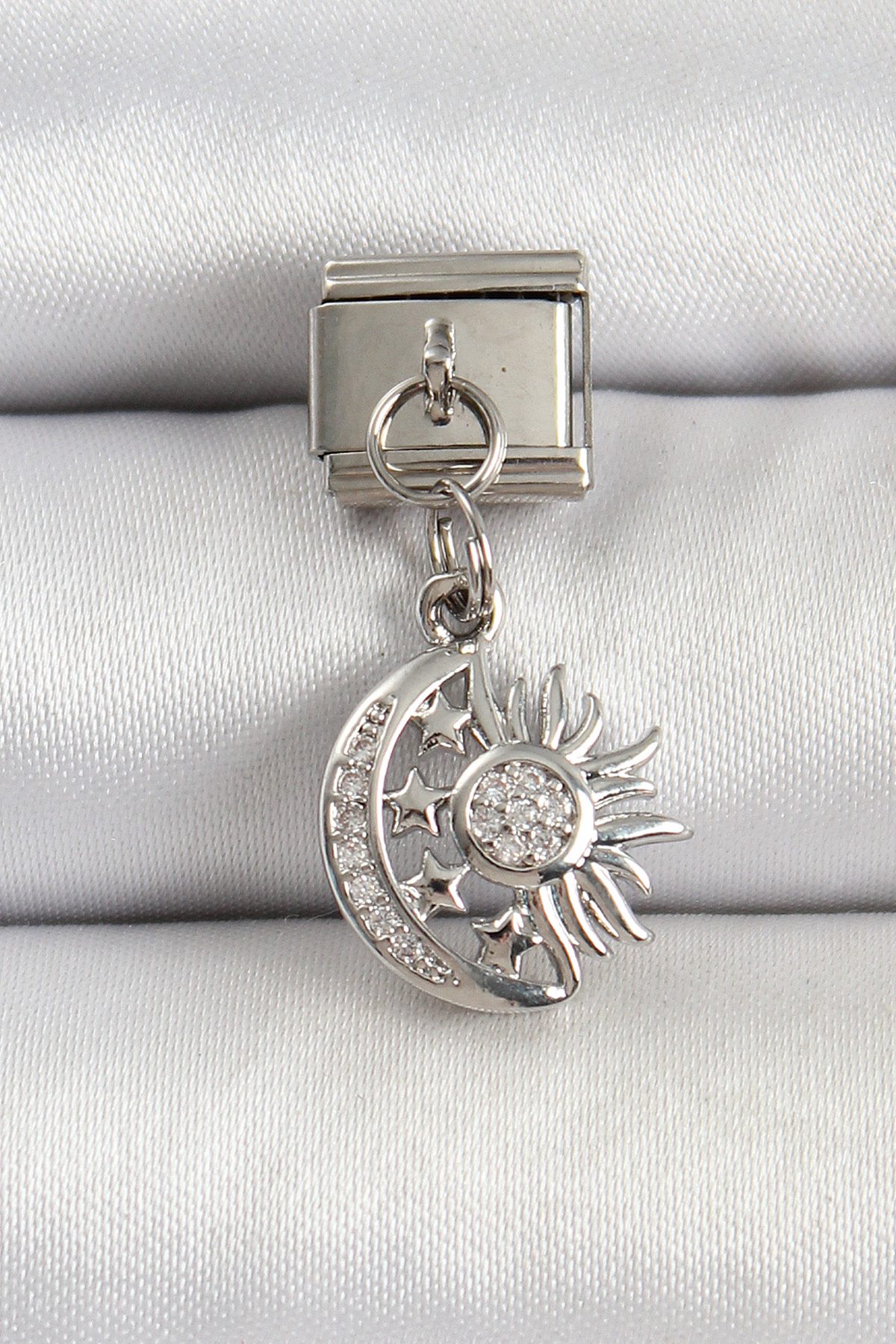 316L Çelik Gümüş Renk Ay ve Güneş Model Nomination Charm - TJ-BC1499
