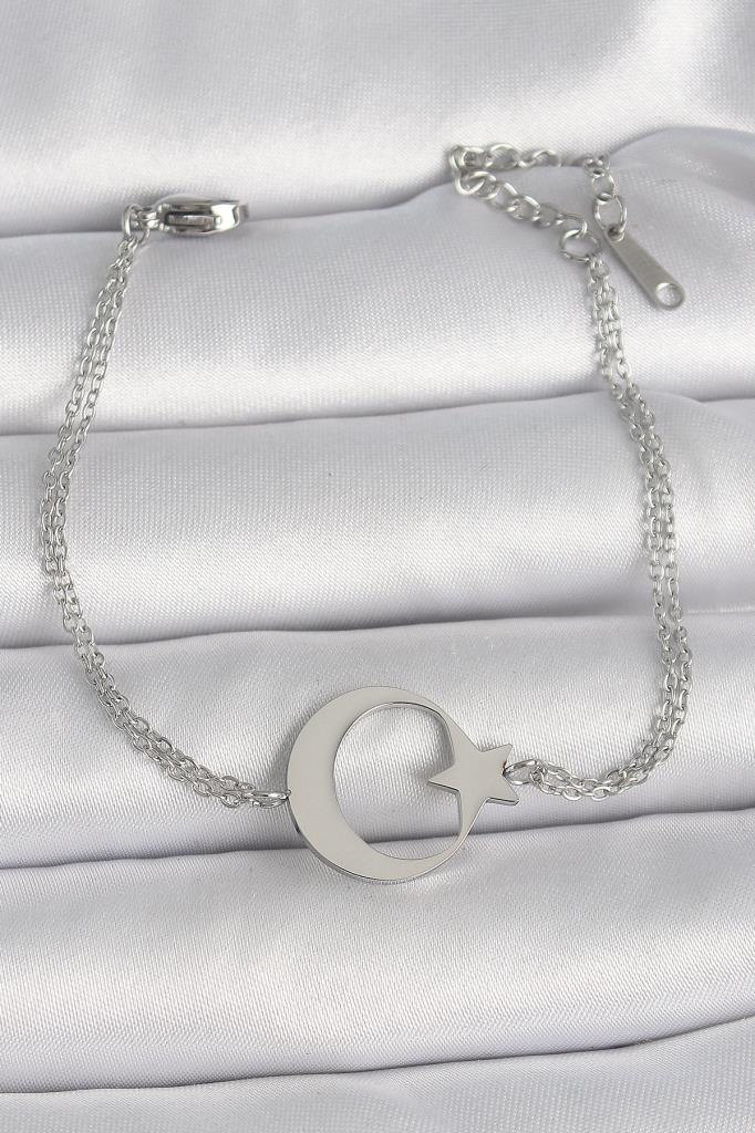 316L Çelik Gümüş Renk Ay Yıldız Model Kadın Bileklik - TJ-BB6662