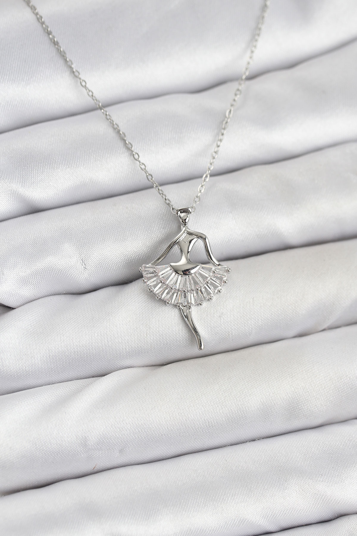 316L Çelik Gümüş Renk Balerin Model Kadın Kolye - TJ-BKO10811