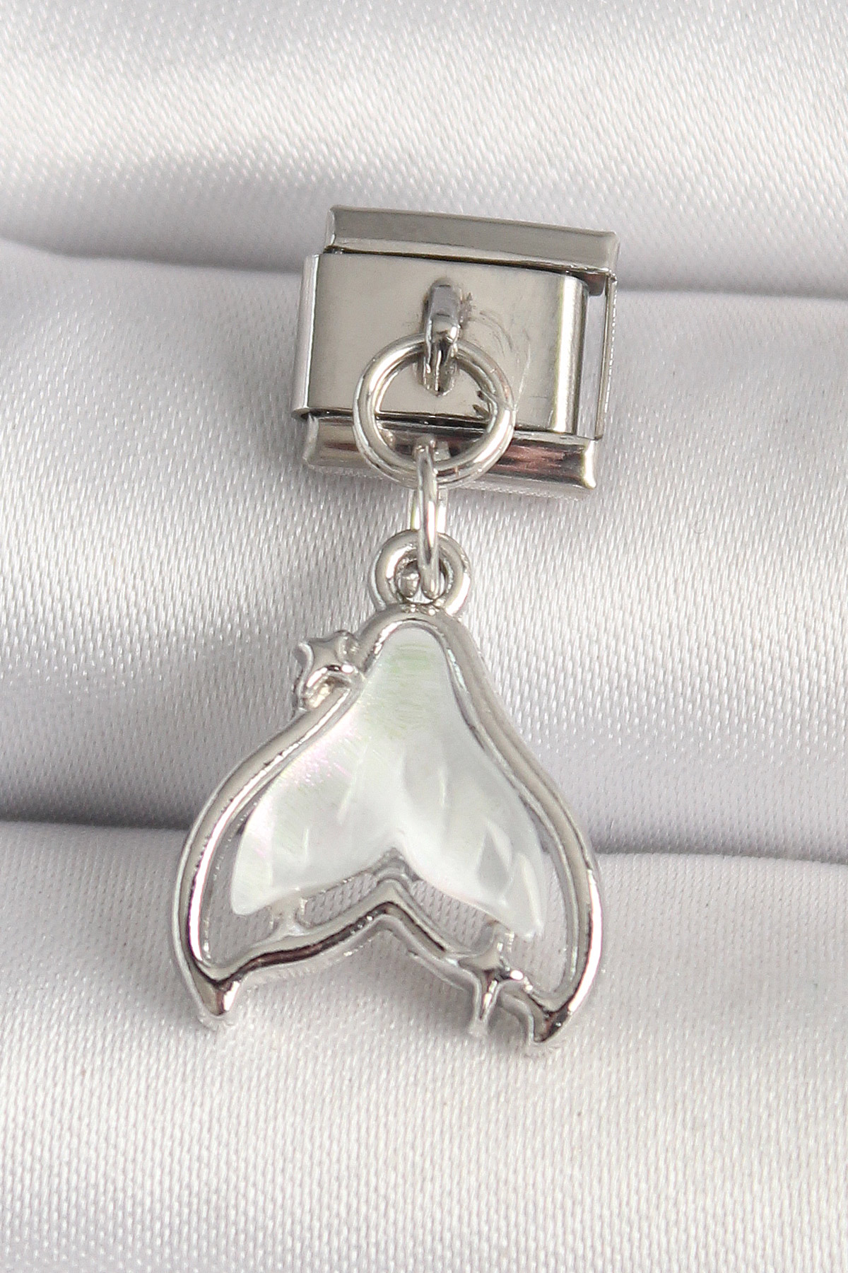 316L Çelik Gümüş Renk Beyaz Balık Kuyruğu Model Nomination Charm - TJ-BC1250