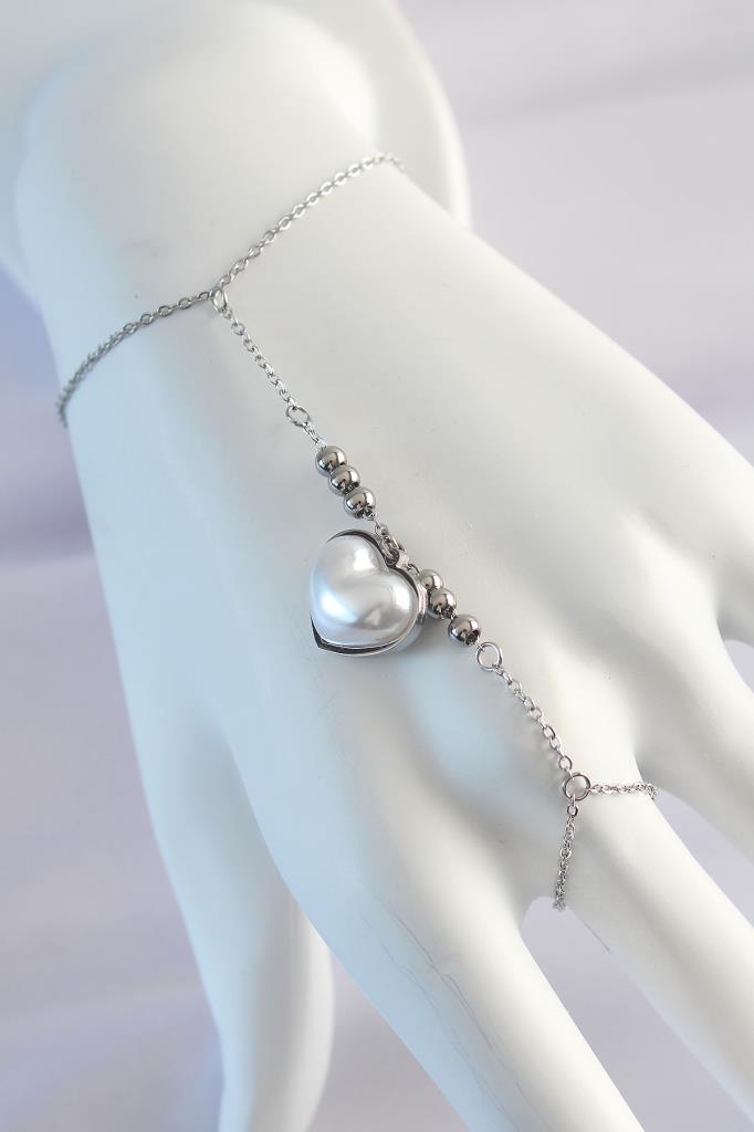 316L Çelik Gümüş Renk Beyaz Bubble Kalp Tasarımlı Şahmeran - TJ-SN575