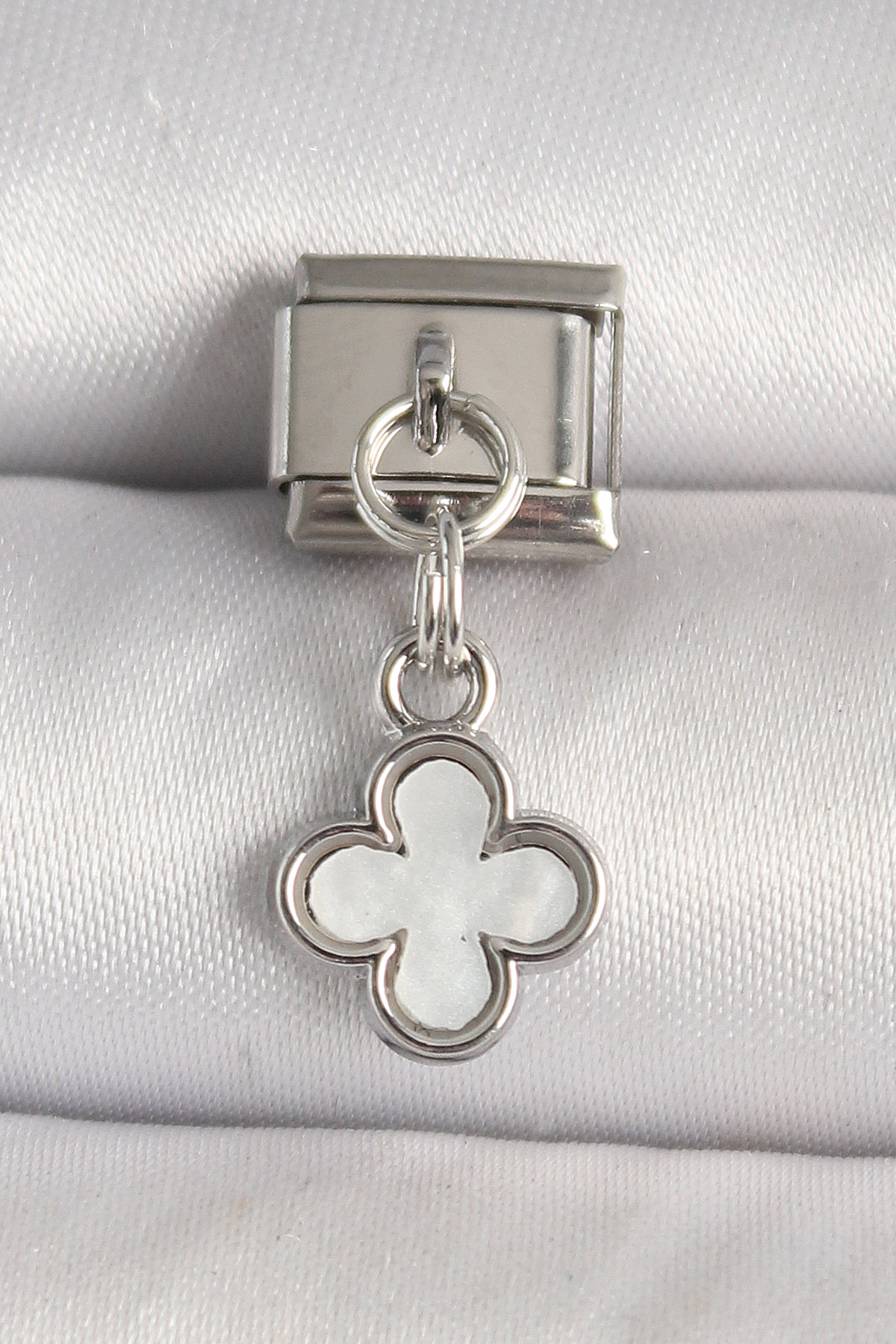 316L Çelik Gümüş Renk Beyaz Mineli Yonca Model Nomination Charm - TJ-BC1269