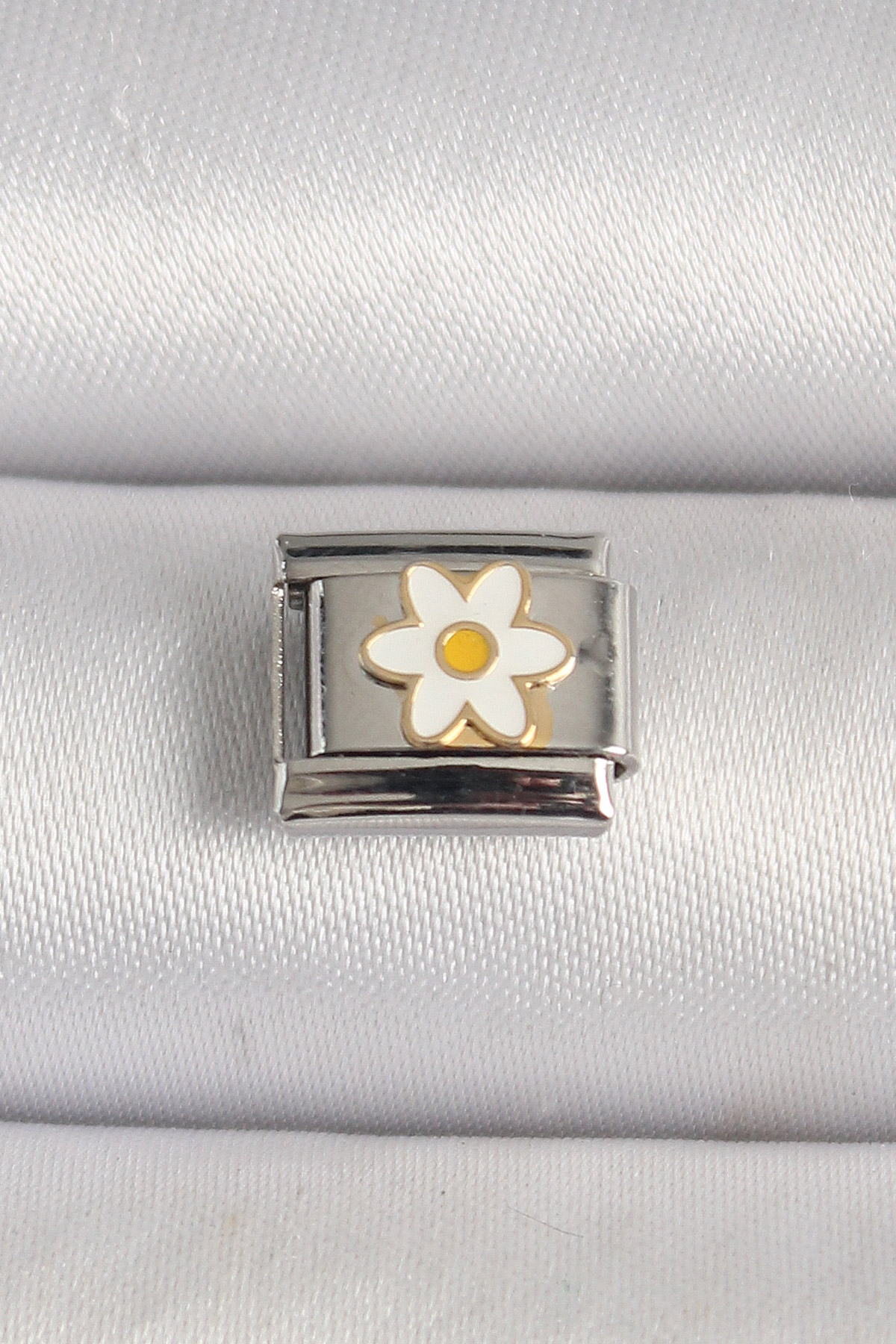 316L Çelik Gümüş Renk Beyaz Papatya İşlemeli Nomination Charm - TJ-BC1207