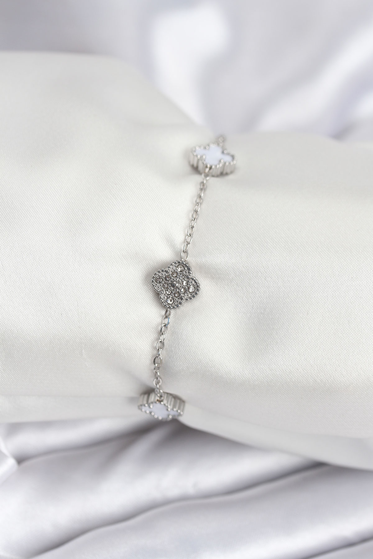 316L Çelik Gümüş Renk Beyaz ve Zirkon Taşlı Baby Boy Yonca Kadın Bileklik - TJ-BB7956