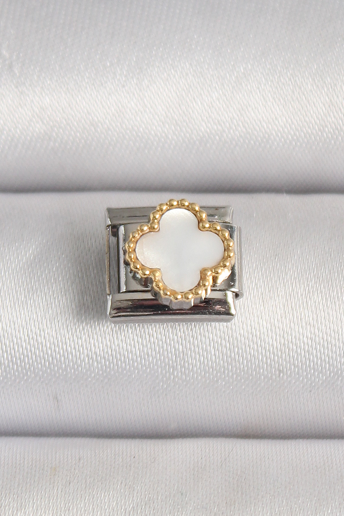 316L Çelik Gümüş Renk Beyaz Yonca İşlemeli Nomination Charm - TJ-BC1203