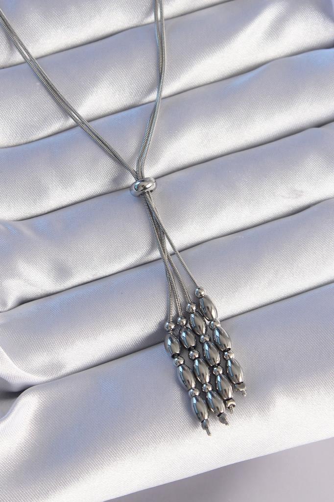 316L Çelik Gümüş Renk Boyu Ayarlanabilir Sallantılı Model Kolye - TJ-BKO8886