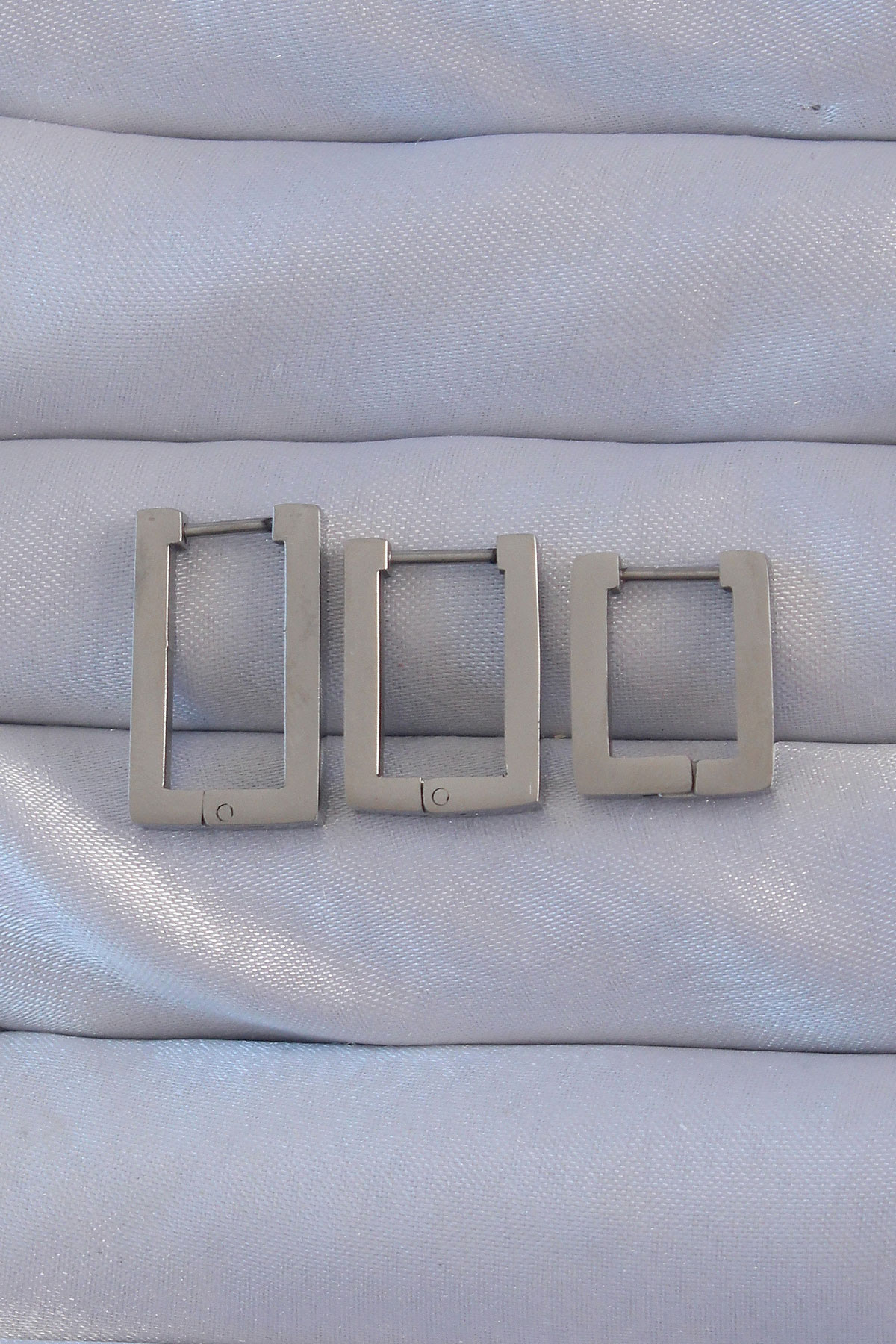 316L Çelik Gümüş Renk Dikdörtgen Küpe Seti - TJ-BKP9160