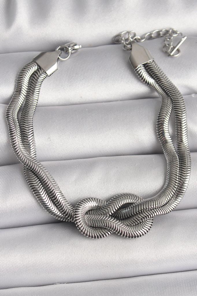 316L Çelik Gümüş Renk Düğüm Model Kadın Bileklik - TJ-BB6711
