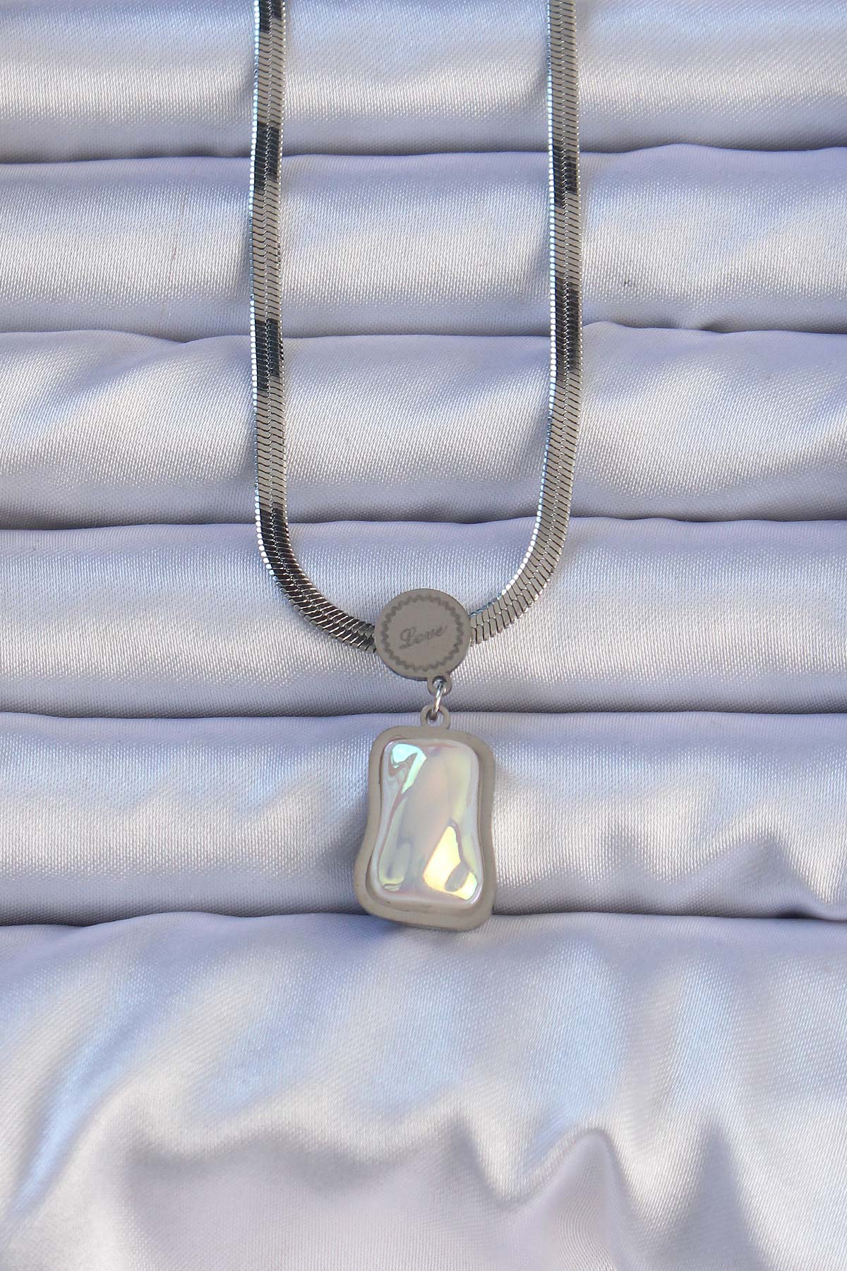 316L Çelik Gümüş Renk İtalyan Zincir Ezme Taşlı Kolye - TJ-BKO9206