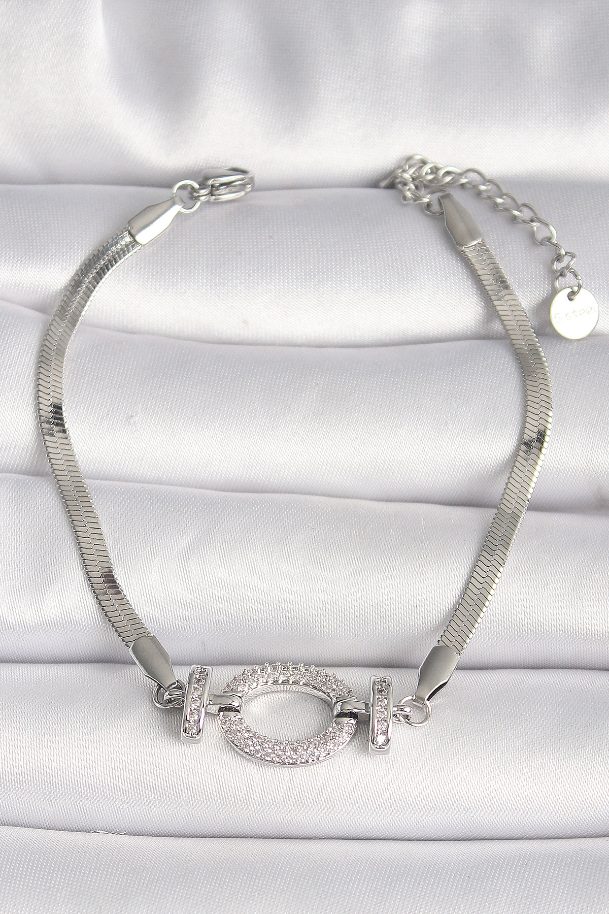 316L Çelik Gümüş Renk İtalyan Zincir Model Zirkon Taşlı Halka Figür Kadın Bileklik - TJ-BB6748