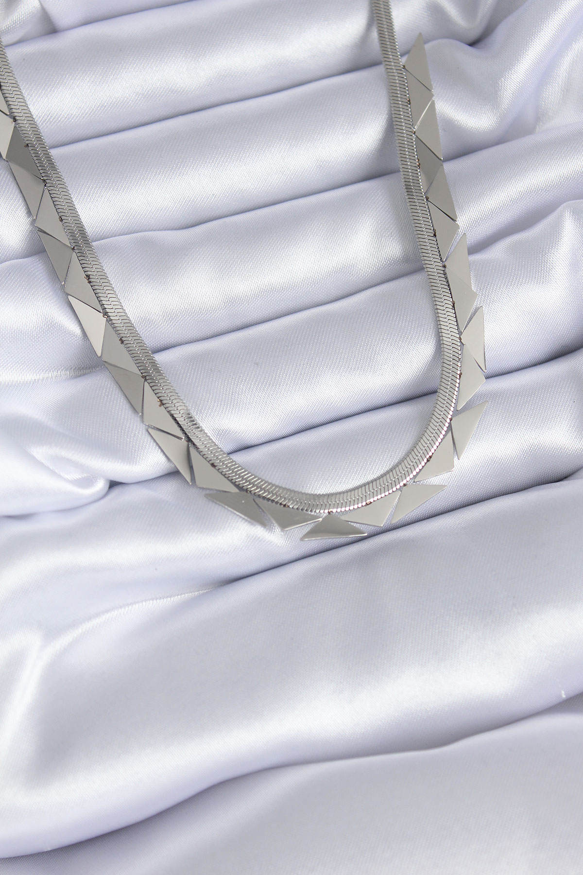 316L Çelik Gümüş Renk İtalyan Zincir Üçgen Model Kadın Kolye - TJ-BKO7714