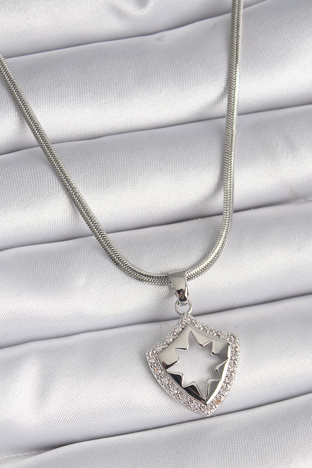 316L Çelik Gümüş Renk İtalyan Zincir Zirkon Taşlı Kutup Yıldızı İşleme Model Kadın Kolye - TJ-BKO9535
