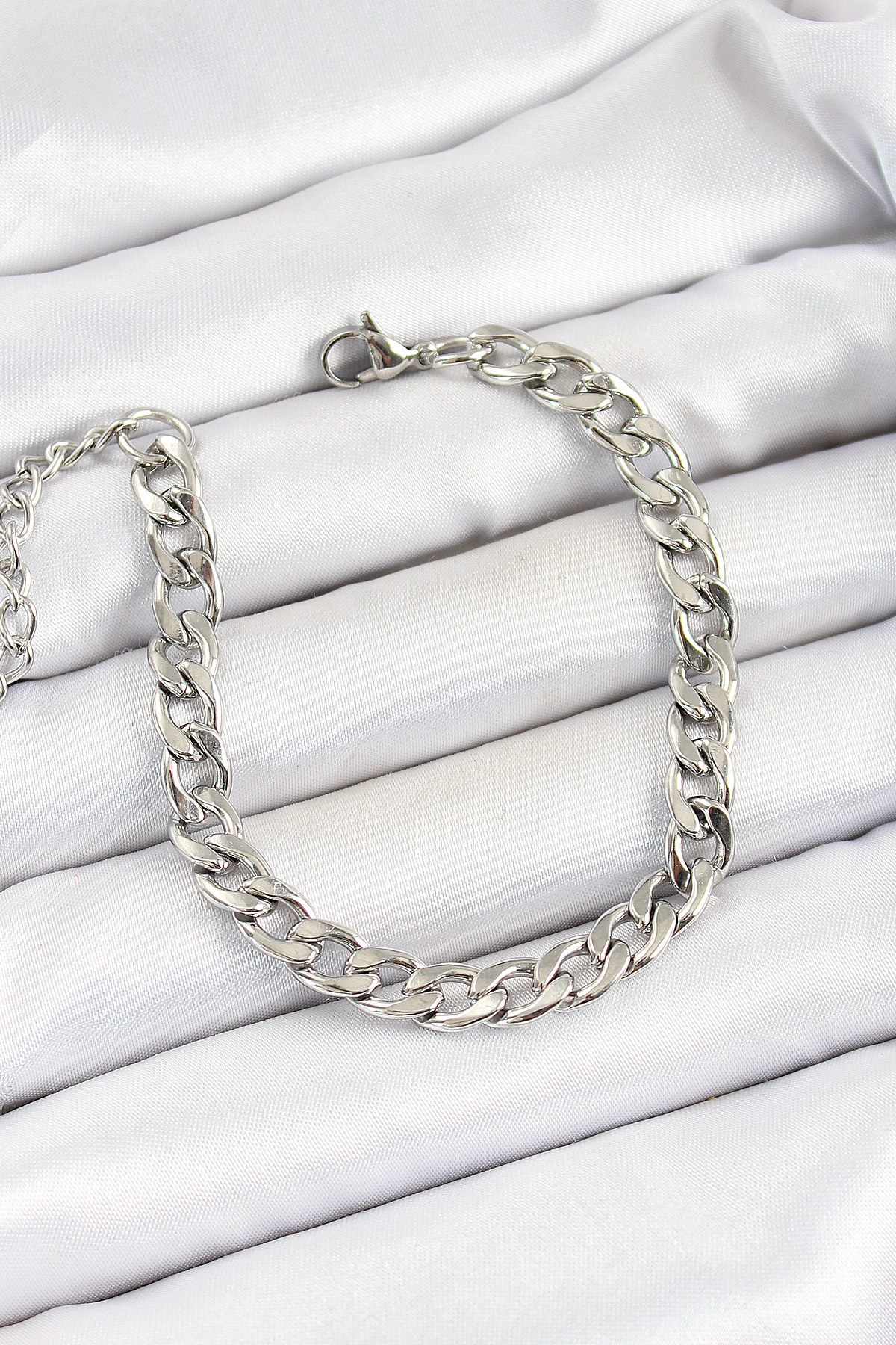 316L Çelik Gümüş Renk Kalın Zincir Erkek Bileklik - TJ-EB3731