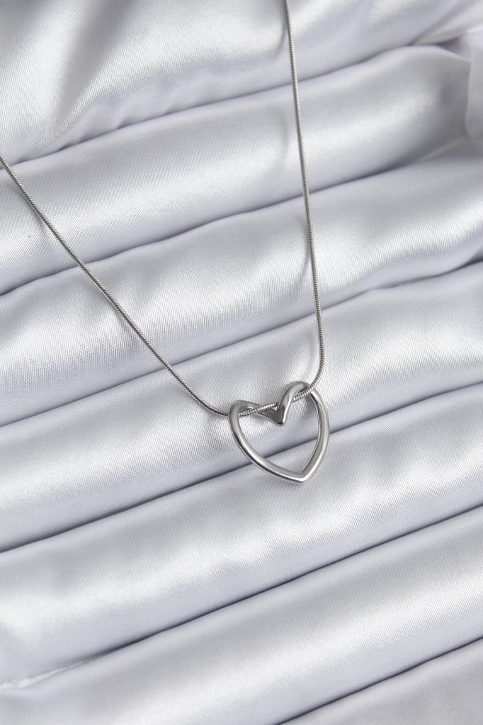 316L Çelik Gümüş Renk Kalp Model Kadın Kolye - TJ-BKO8118