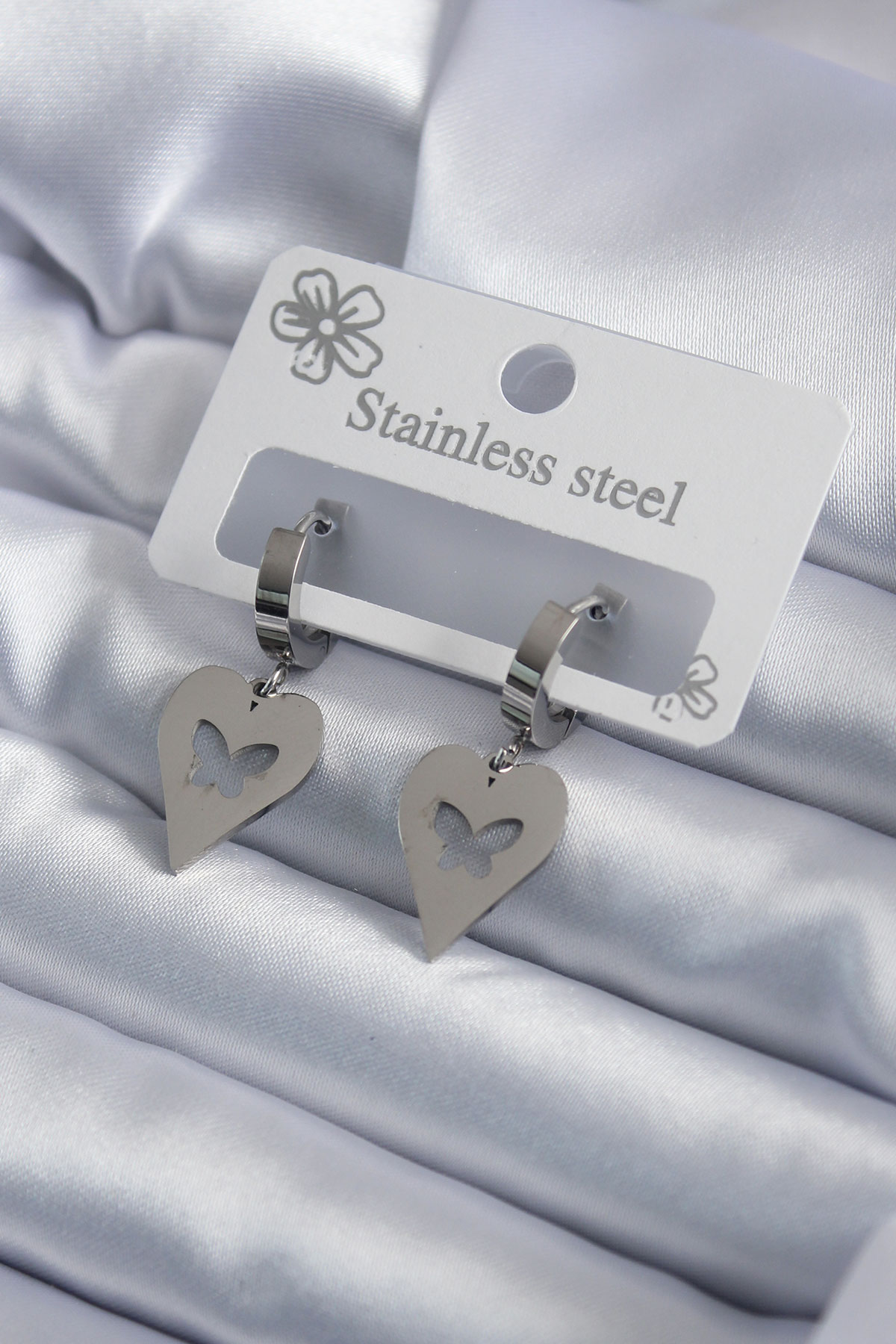 316L Çelik Gümüş Renk Kalp Model Kelebek İşleme Kadın Küpe - TJ-BKP7950