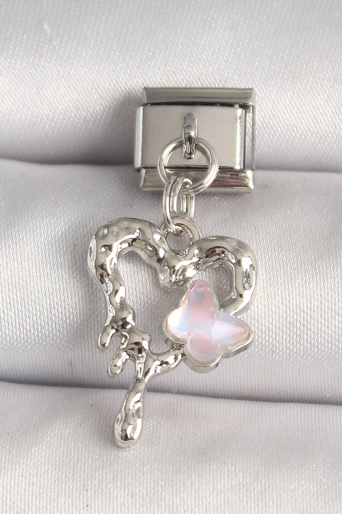 316L Çelik Gümüş Renk Kalp Pembe Mineli Kelebek Detay Nomination Charm - TJ-BC1310