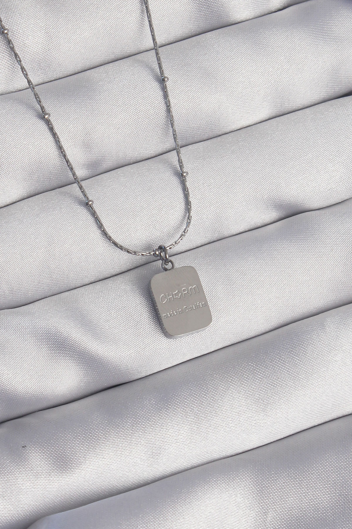 316L Çelik Gümüş Renk Kare Charm Model Kolye - TJ-BKO8927