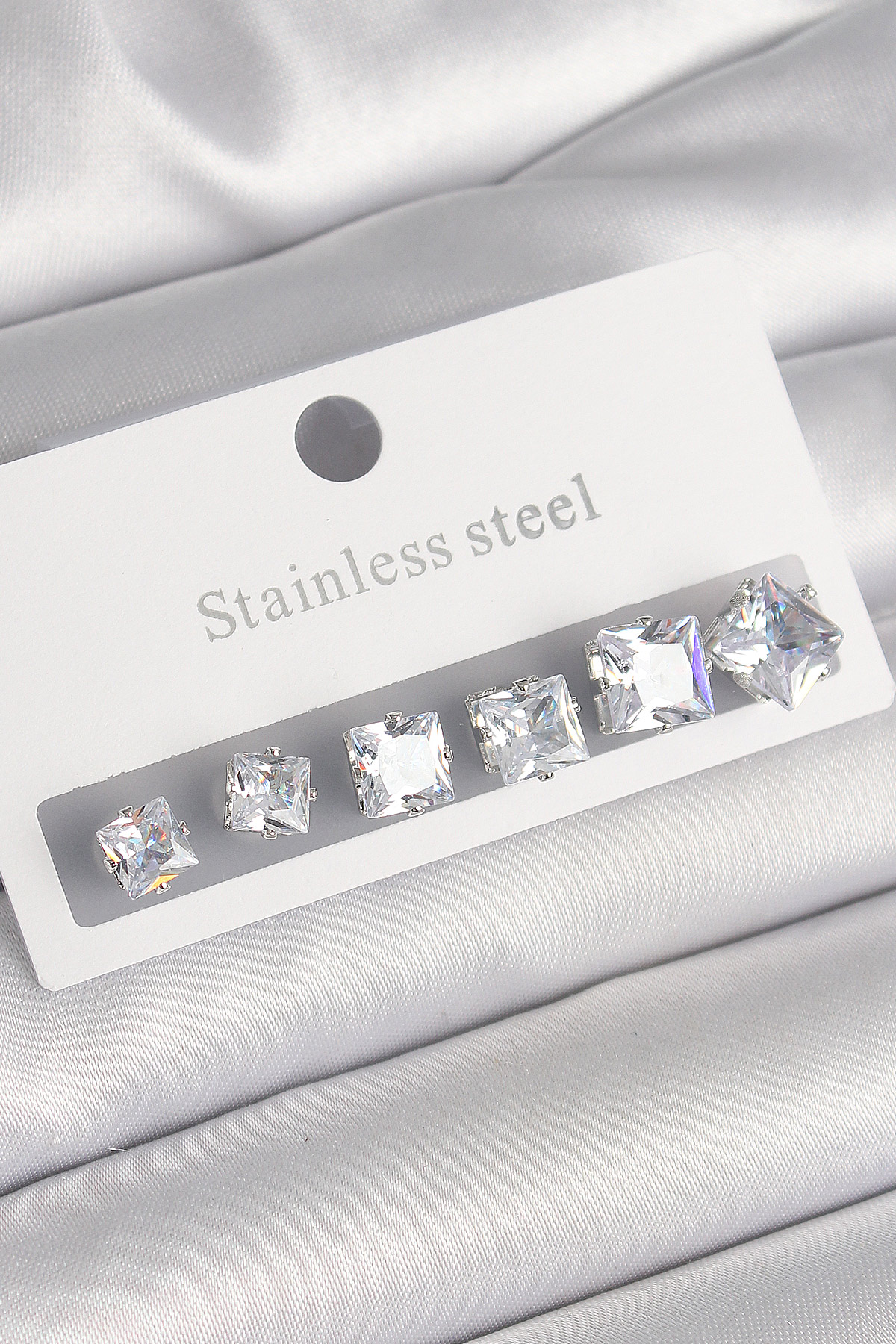 316L Çelik Gümüş Renk Kare Zirkon Taşlı Kadın Küpe Seti - TJ-BKP10303