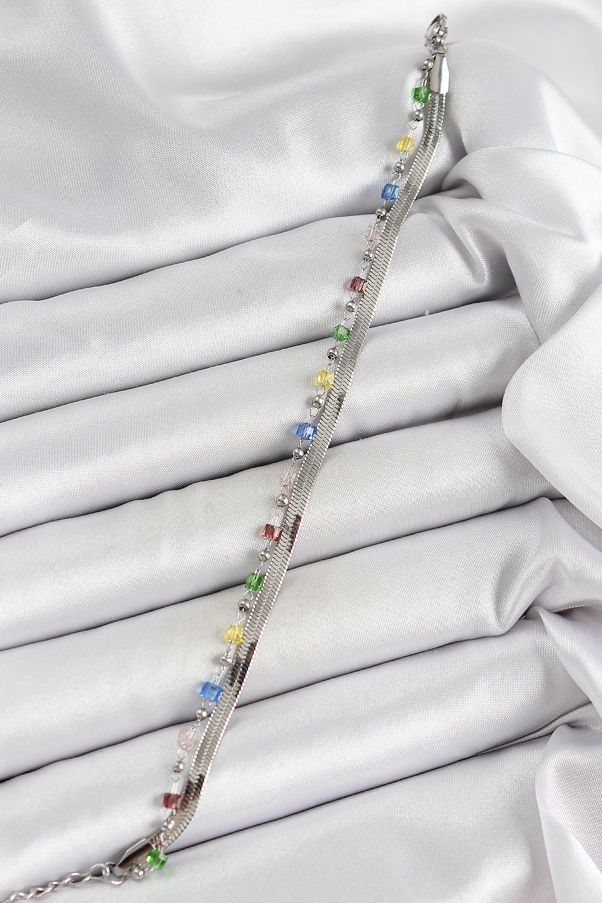 316L Çelik Gümüş Renk Karışık Renkli Kristal Taşlı Kadın Bileklik - TJ-BB7089