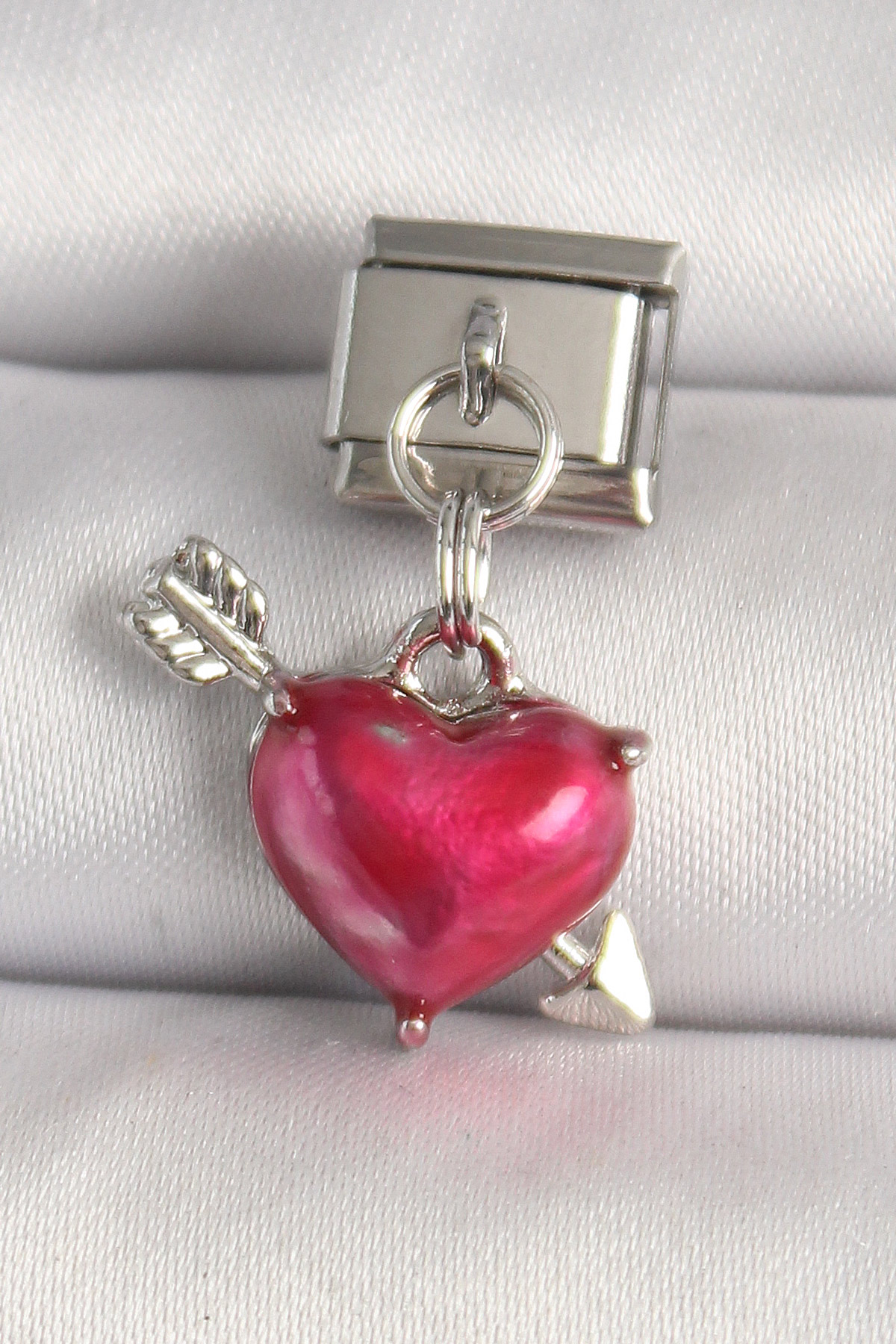 316L Çelik Gümüş Renk Kırmızı Kalp ve Ok Model Nomination Charm - TJ-BC1306