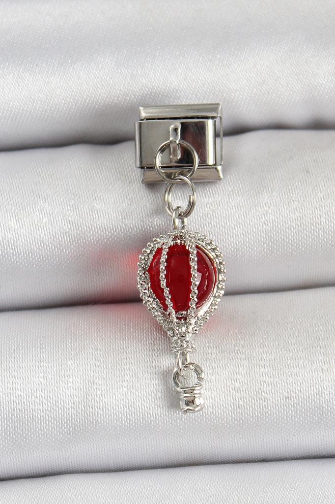 316L Çelik Gümüş Renk Kırmızı Uçan Balon Model Nomination Charm - BC1491