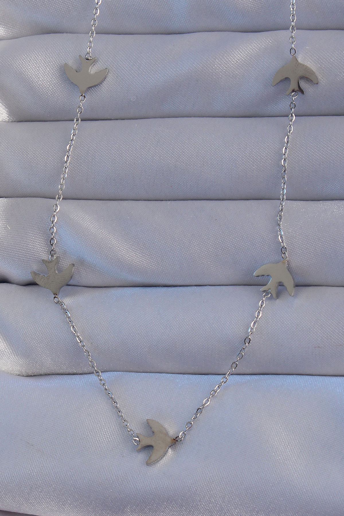 316L Çelik Gümüş Renk Kuş Model Kolye - TJ-BKO8942