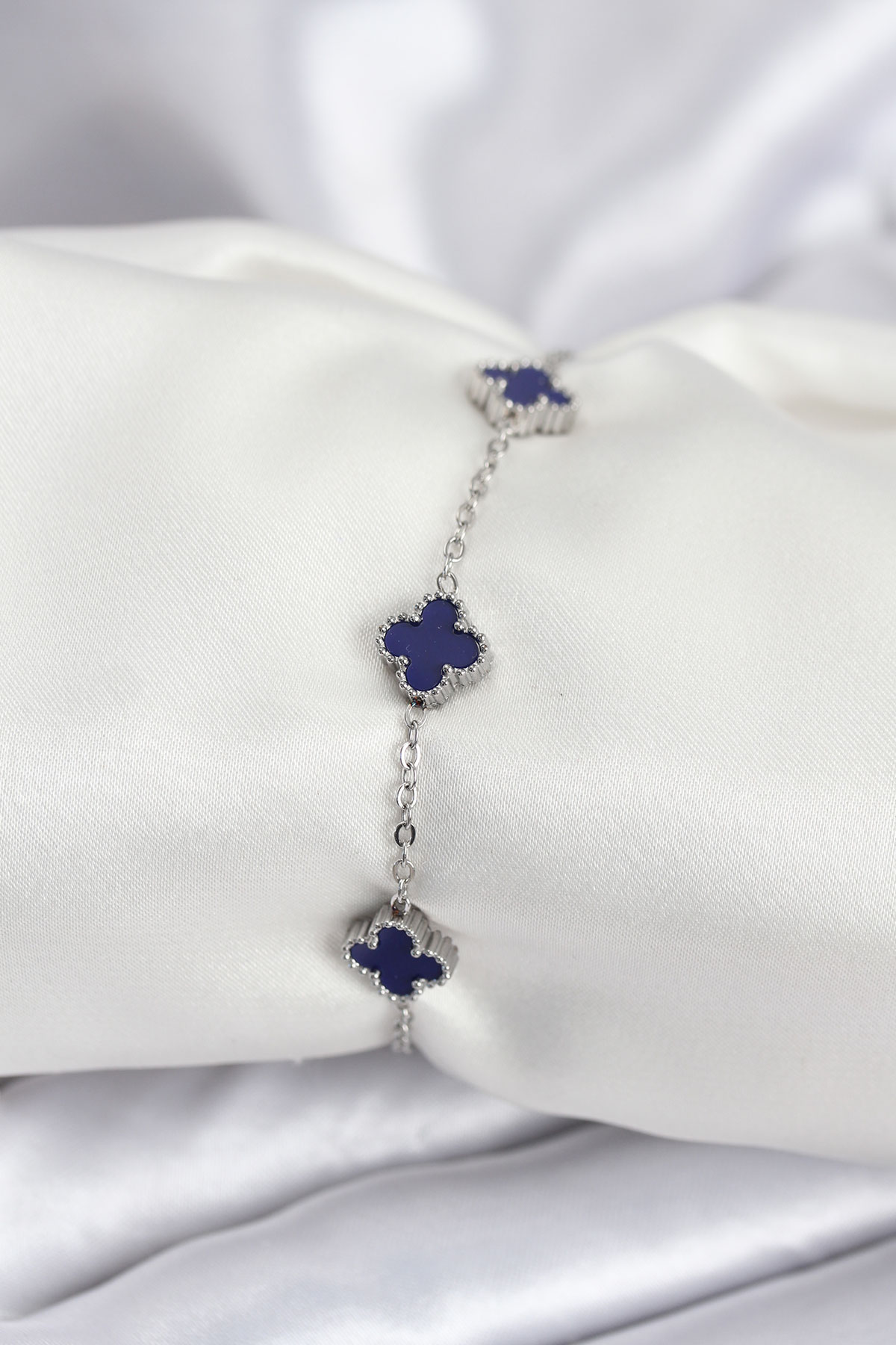316L Çelik Gümüş Renk Lacivert Baby Boy Yonca Kadın Bileklik - TJ-BB7952