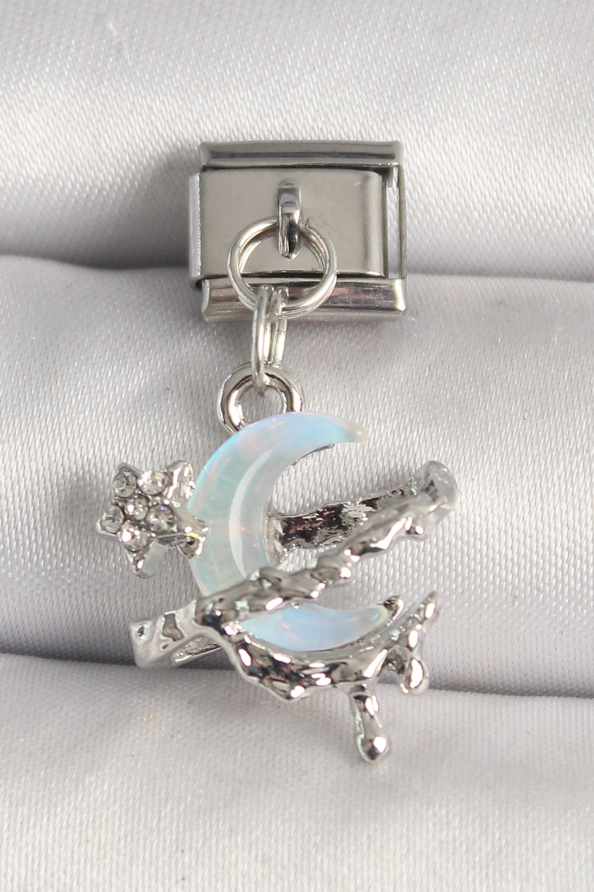 316L Çelik Gümüş Renk Mavi Mineli Hilal Model Nomination Charm - TJ-BC1297
