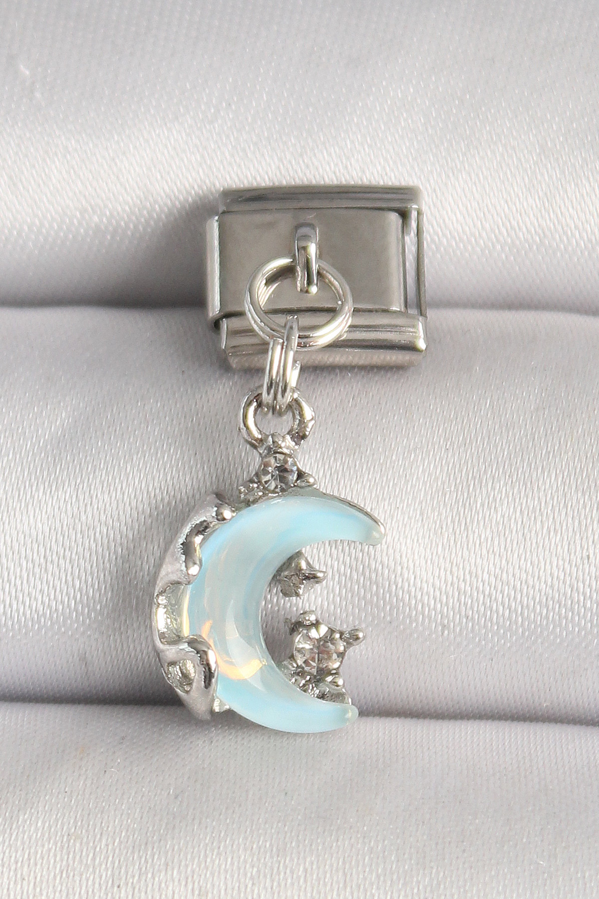 316L Çelik Gümüş Renk Mavi Mineli Hilal Model Zirkon Taş Detay Nomination Charm - TJ-BC1288