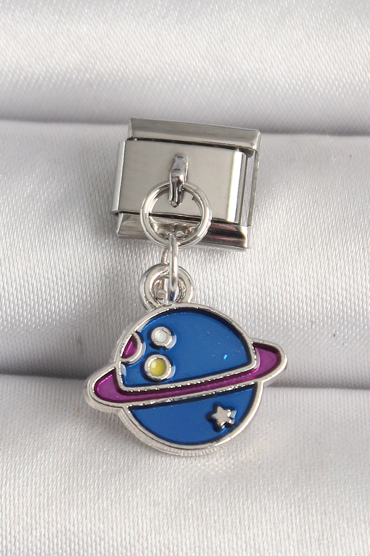 316L Çelik Gümüş Renk Mavi Satürn Model Nomination Charm - TJ-BC1219