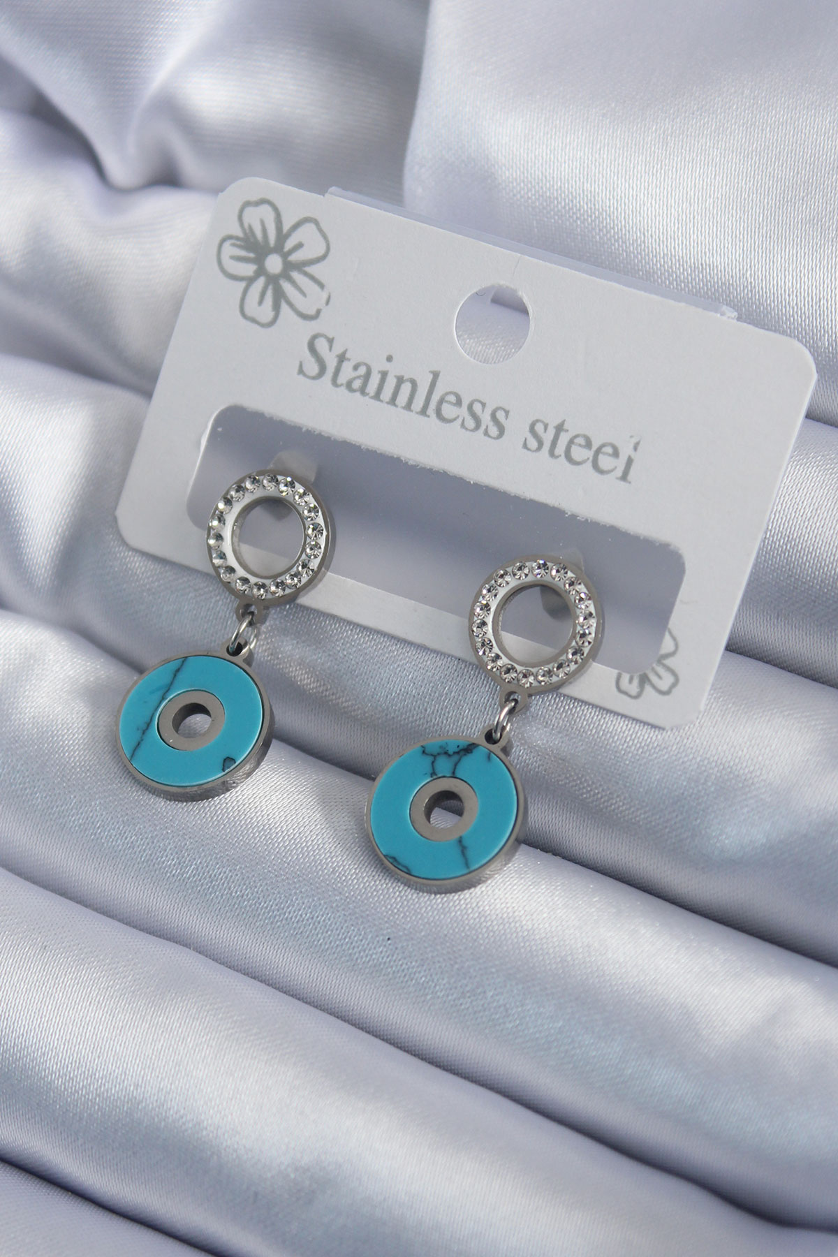 316L Çelik Gümüş Renk Mavi Taşlı Zirkon Taşlı Kadın Küpe - TJ-BKP7939