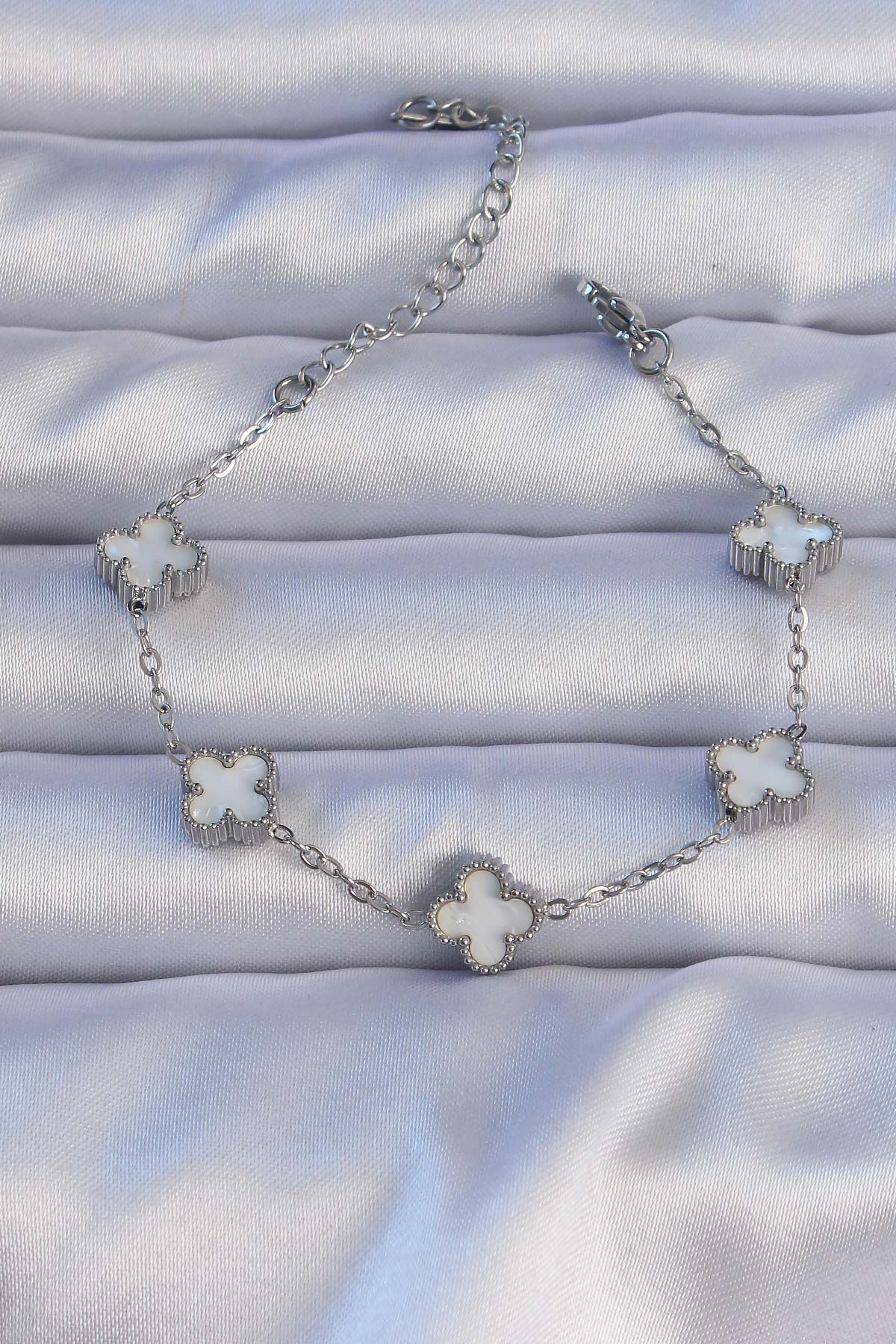 316L Çelik Gümüş Renk Mineli Yonca Model Bileklik - TJ-BB6302