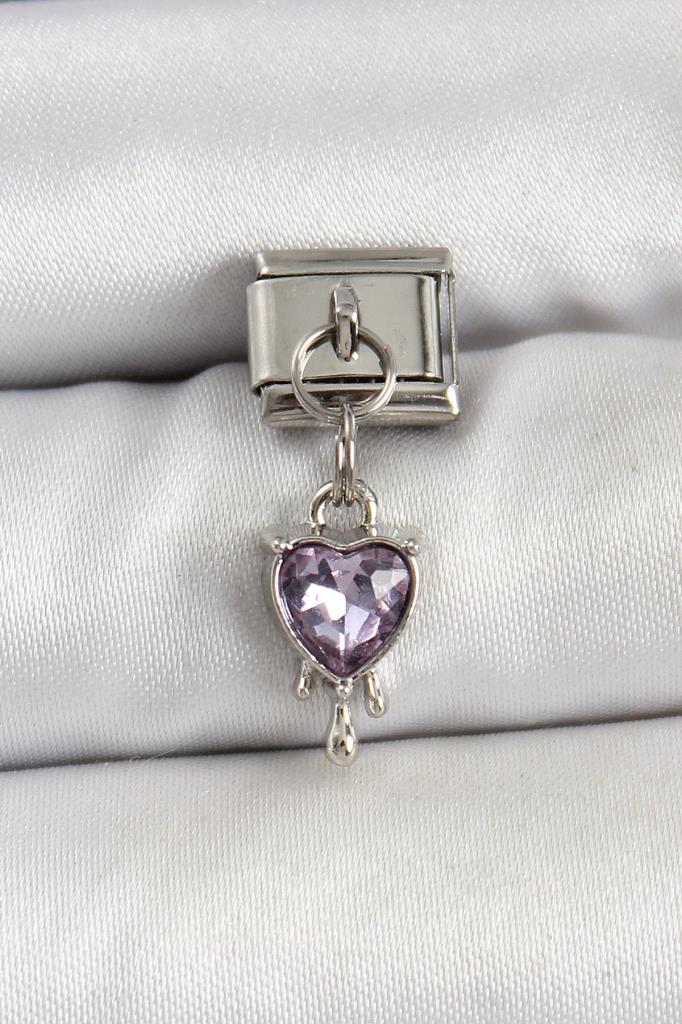316L Çelik Gümüş Renk Mor Kalp Model Nomination Charm - BC1490