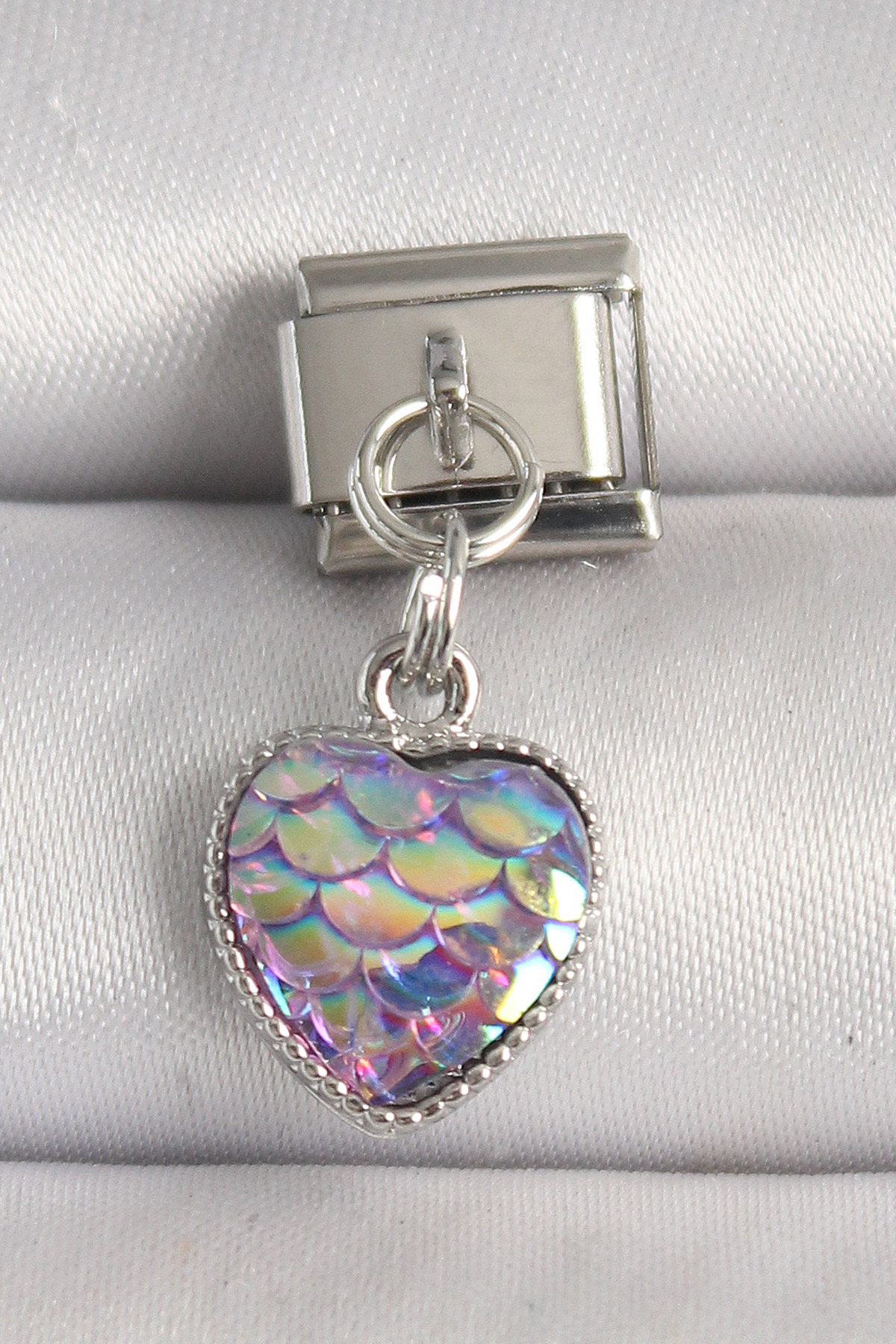 316L Çelik Gümüş Renk Mor Pullu Kalp Model Nomination Charm - TJ-BC1248