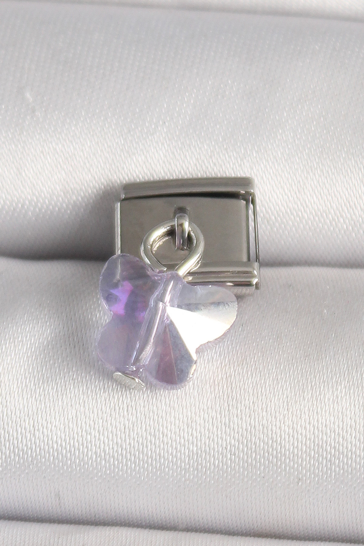 316L Çelik Gümüş Renk Mor Zirkon Taşlı Nomination Charm - TJ-BC1318