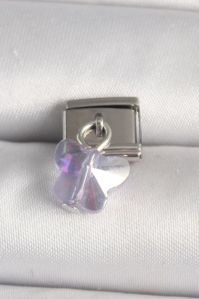 316L Çelik Gümüş Renk Mor Zirkon Taşlı Nomination Charm - BC1318