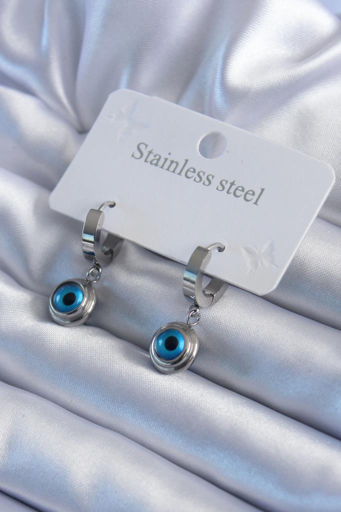 316L Çelik Gümüş Renk Nazar Boncuk Model Kadın Küpe - TJ-BKP8000