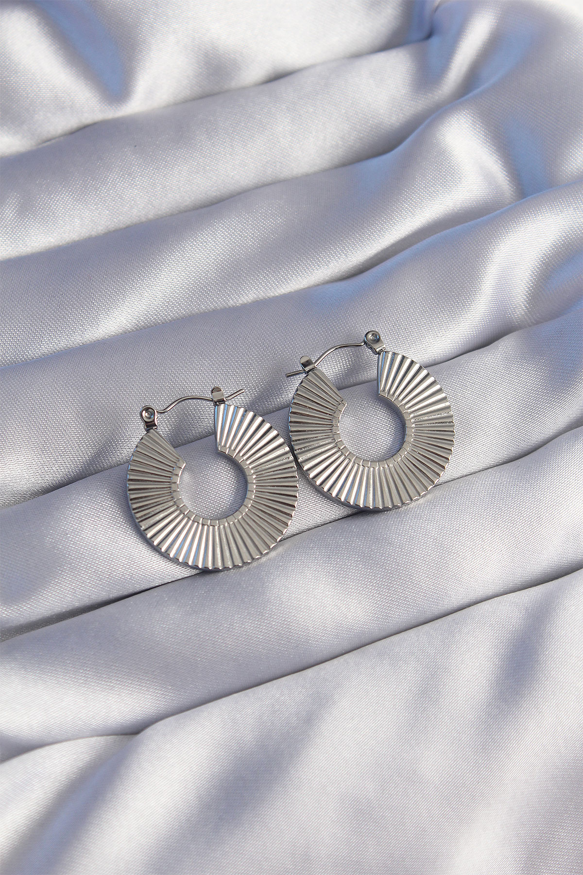 316L Çelik Gümüş Renk Oval Çizgili Plaka Küpe - TJ-BKP9048