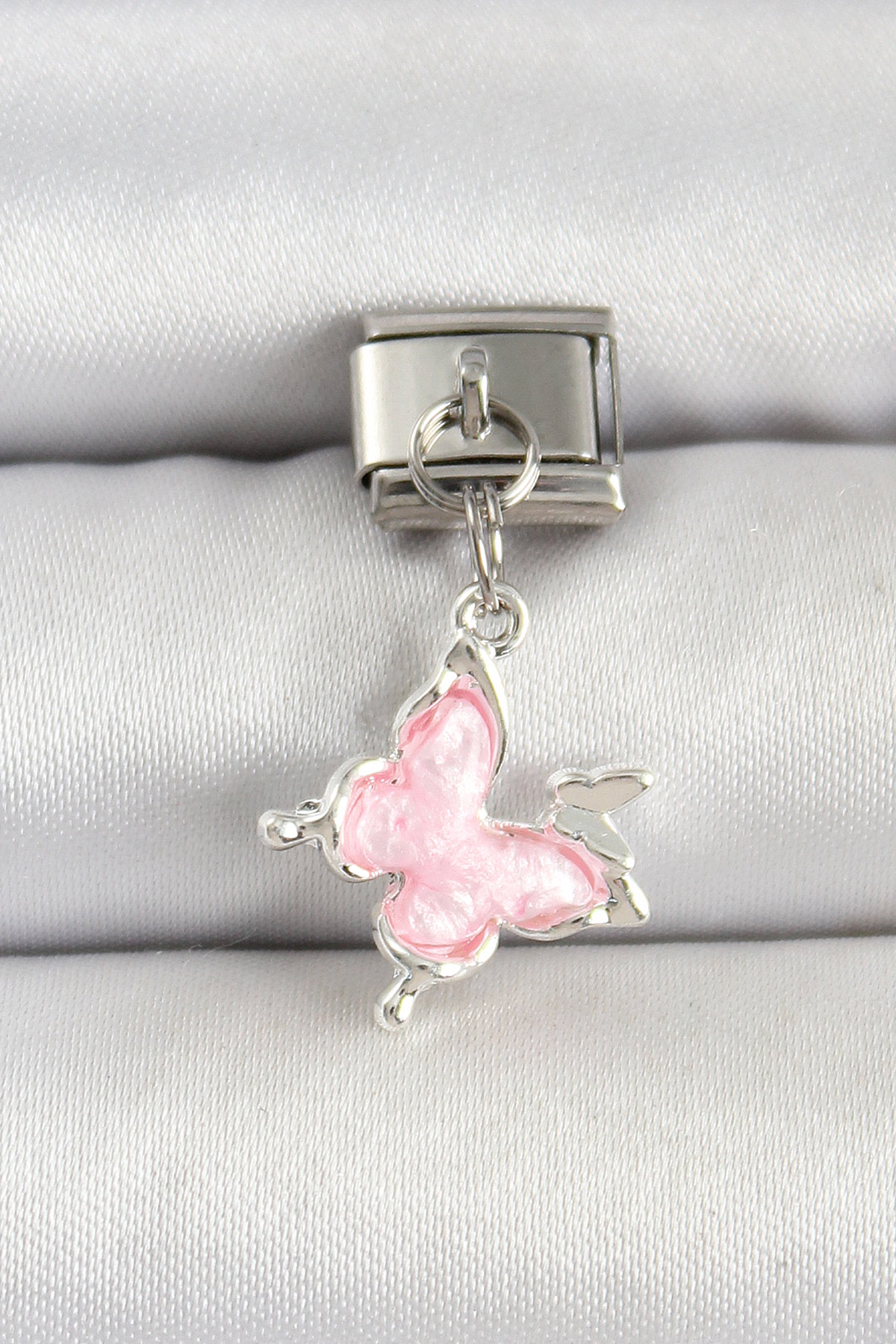 316L Çelik Gümüş Renk Pembe Kelebek Model Nomination Charm - TJ-BC1512