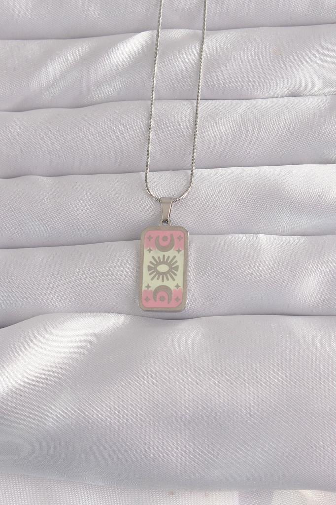 316L Çelik Gümüş Renk Pembe Mineli Ay Figür Tarot Kolye - TJ-BKO9045