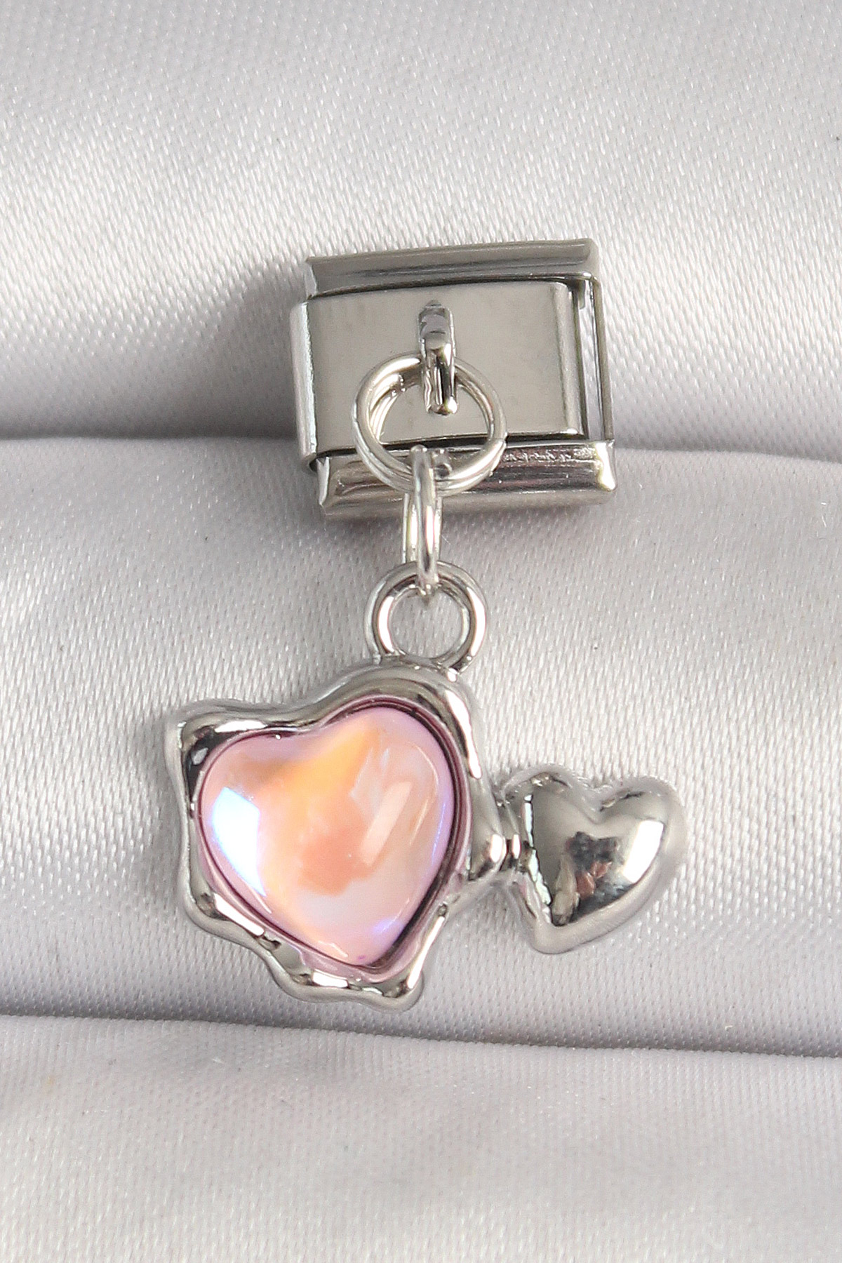 316L Çelik Gümüş Renk Pembe Mineli Kalp Model Nomination Charm - TJ-BC1308