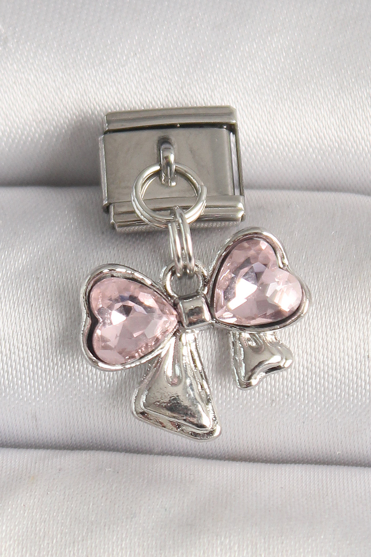 316L Çelik Gümüş Renk Pembe Zirkon Taşlı Fiyonk Model Nomination Charm - TJ-BC1298