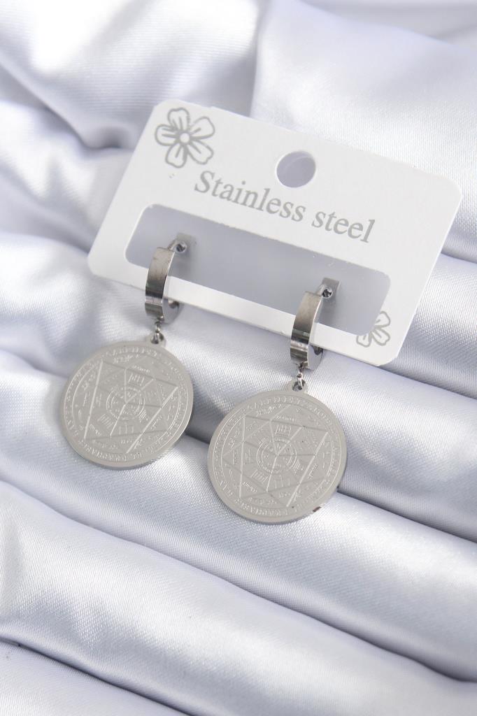 316L Çelik Gümüş Renk Pentagram İşleme Model Kadın Küpe - TJ-BKP7924